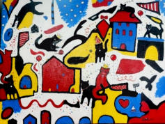 with a BA in Political Science and is a self-taught artist. His work consists of paintings, experimental canvas
